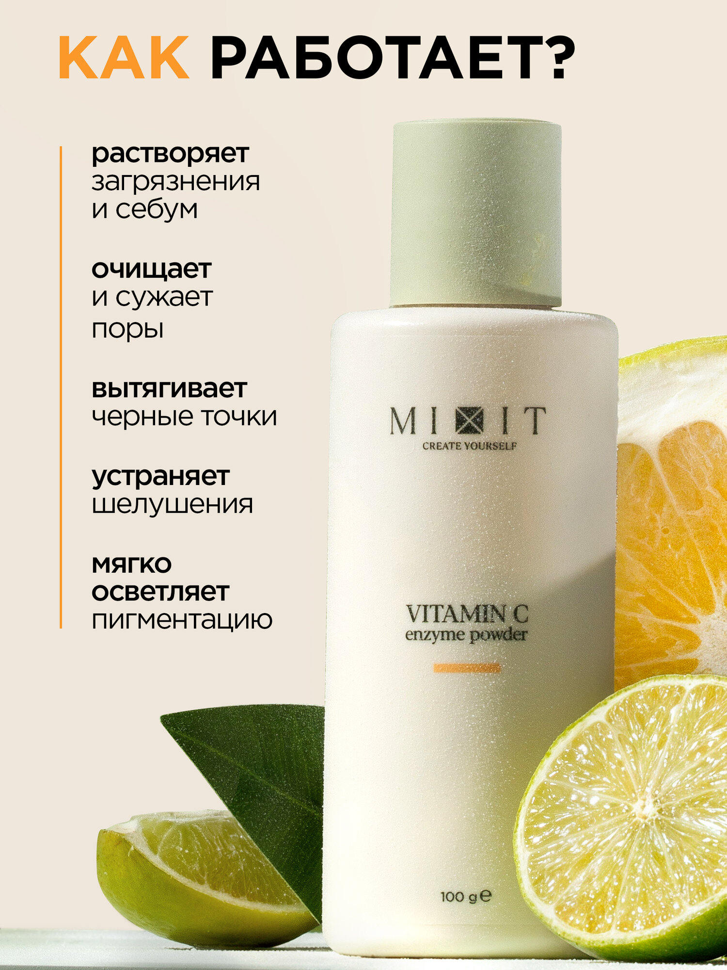 MIXIT Энзимная пудра для умывания. Пилинг для лица очищающий с витамином С, YOUR SKIN 100 мл информация: