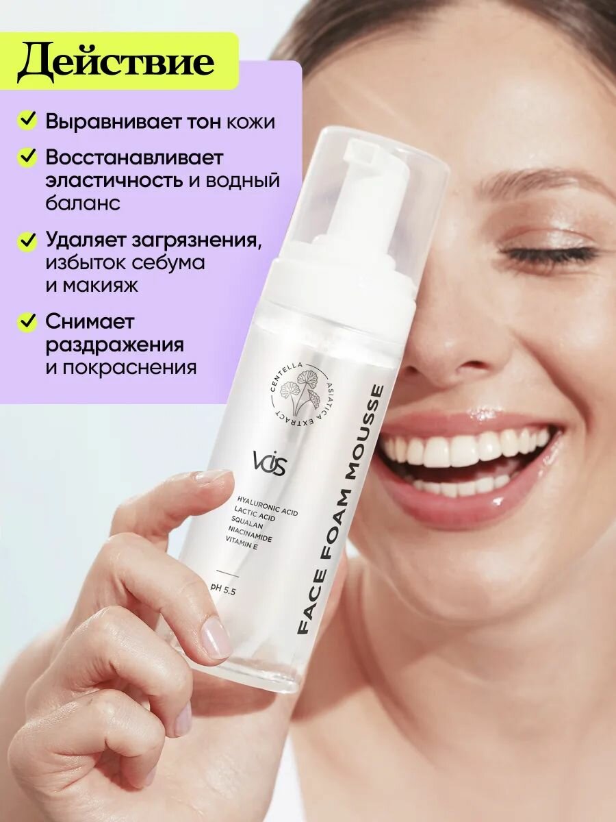 10 цен на VOIS Пенка-мусс для умывания лица и снятия макияжа очищающая, увлажняющая с гиалуроновой кислотой 150 мл