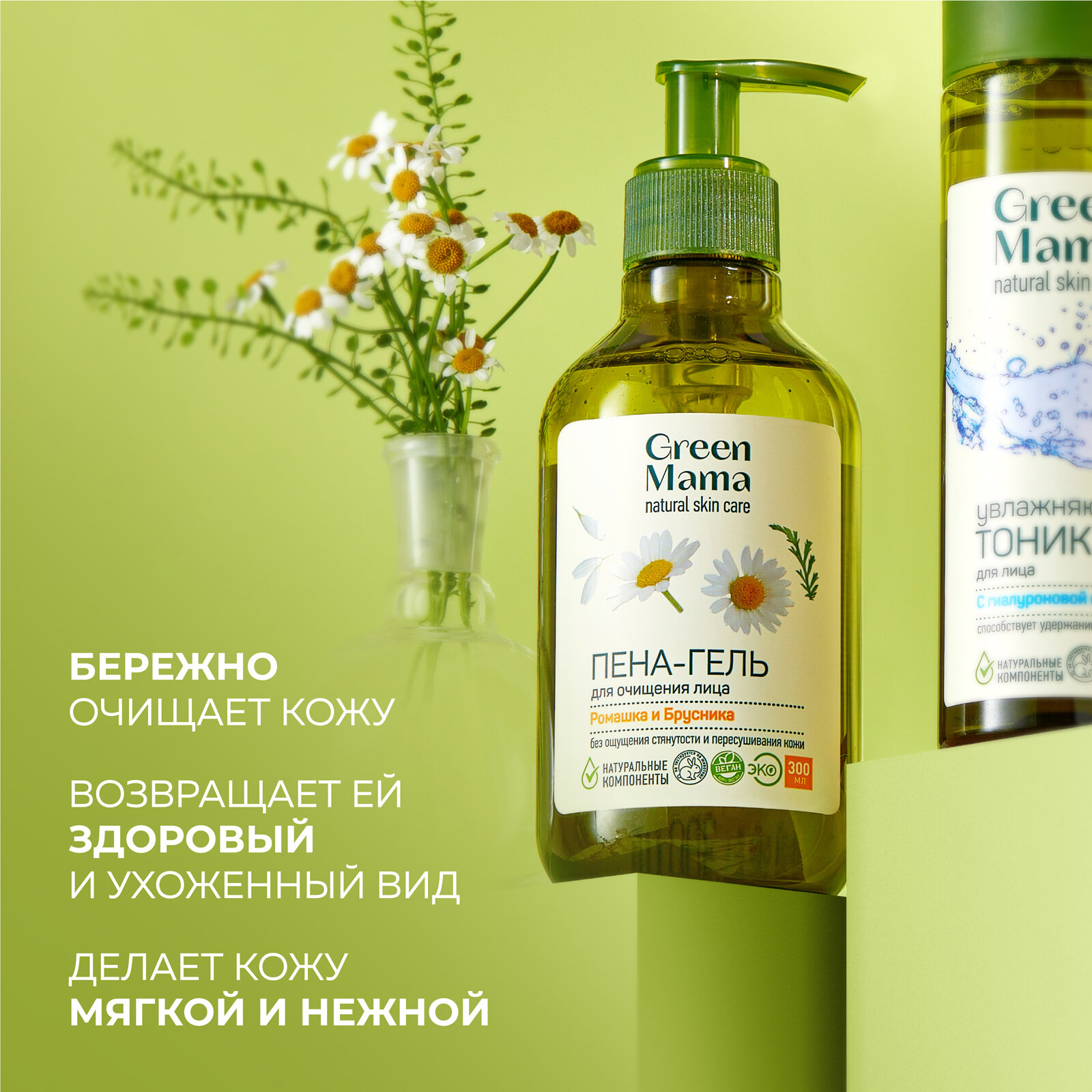 10 цен на Пена-гель для лица GREEN MAMA ромашка и брусника чистящая 300 мл