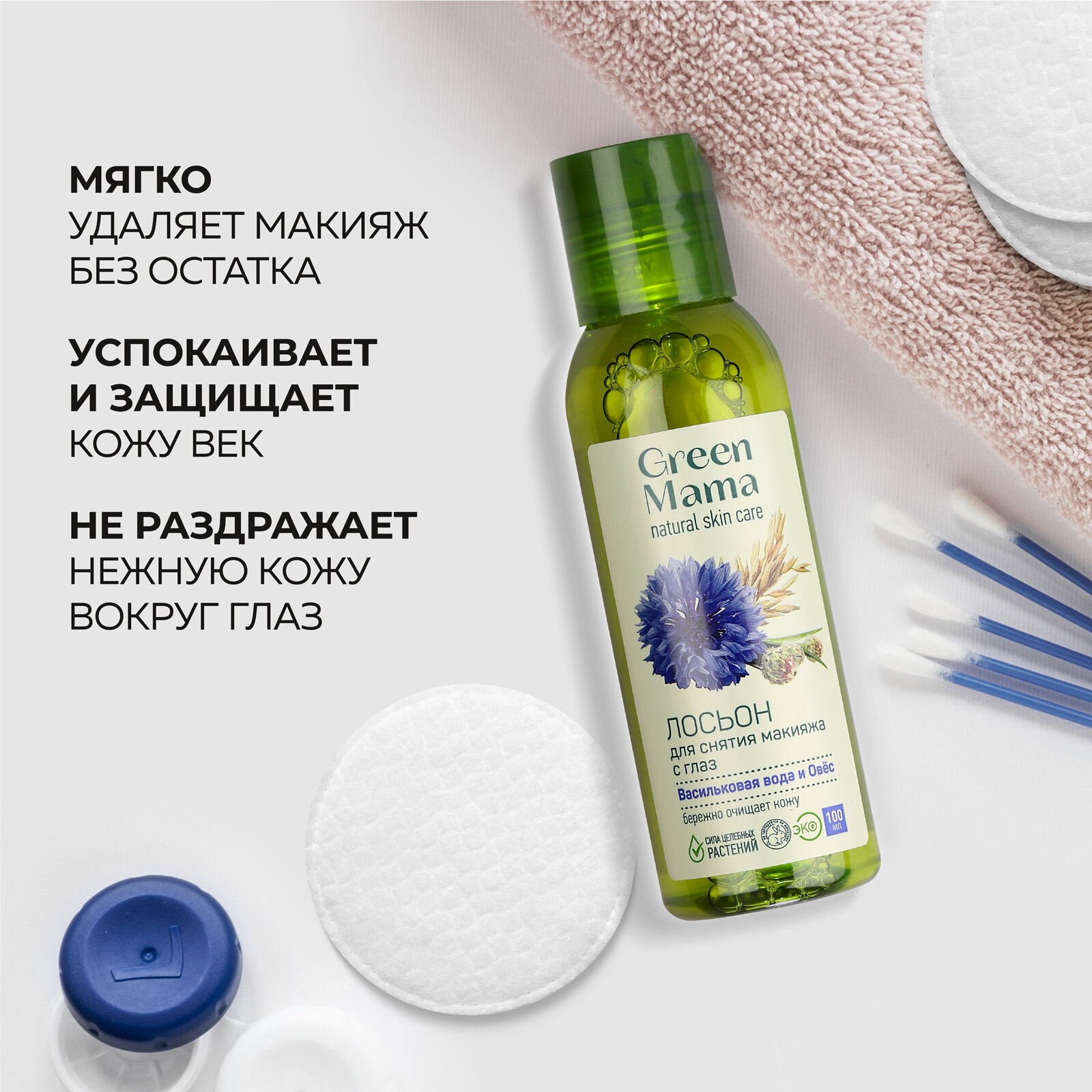 Лосьон для снятия макияжа с глаз GREEN MAMA васильковая вода и овес 100 мл - 2 шт информация: