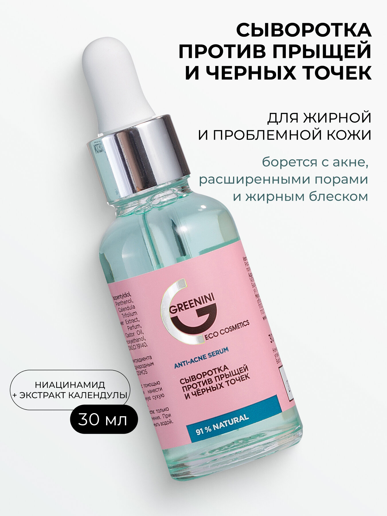 Greenini Сыворотка против прыщей и чёрных точек Anti acne 30 мл информация: