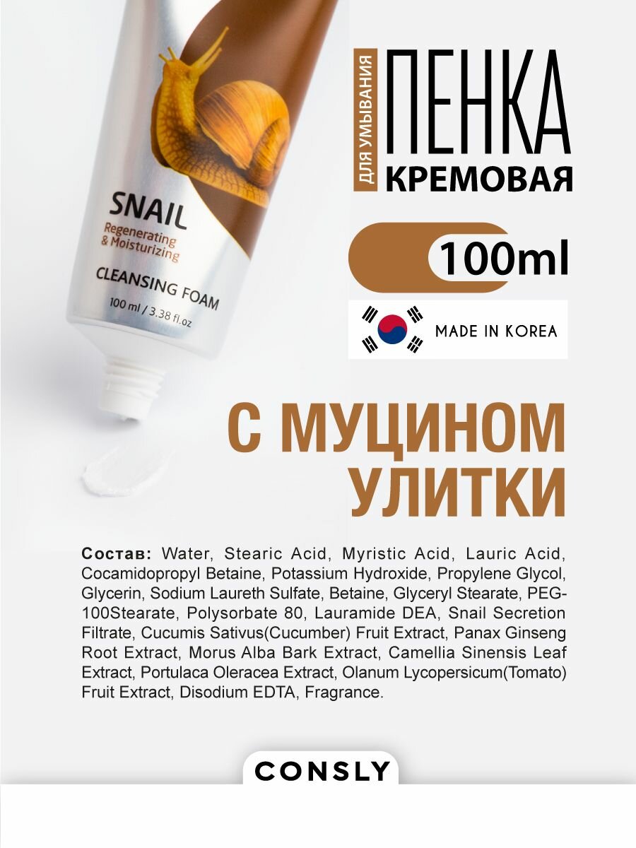 Consly Cleansing Classic Восстанавливающая кремовая пенка для умывания с муцином улитки, 100 мл информация: