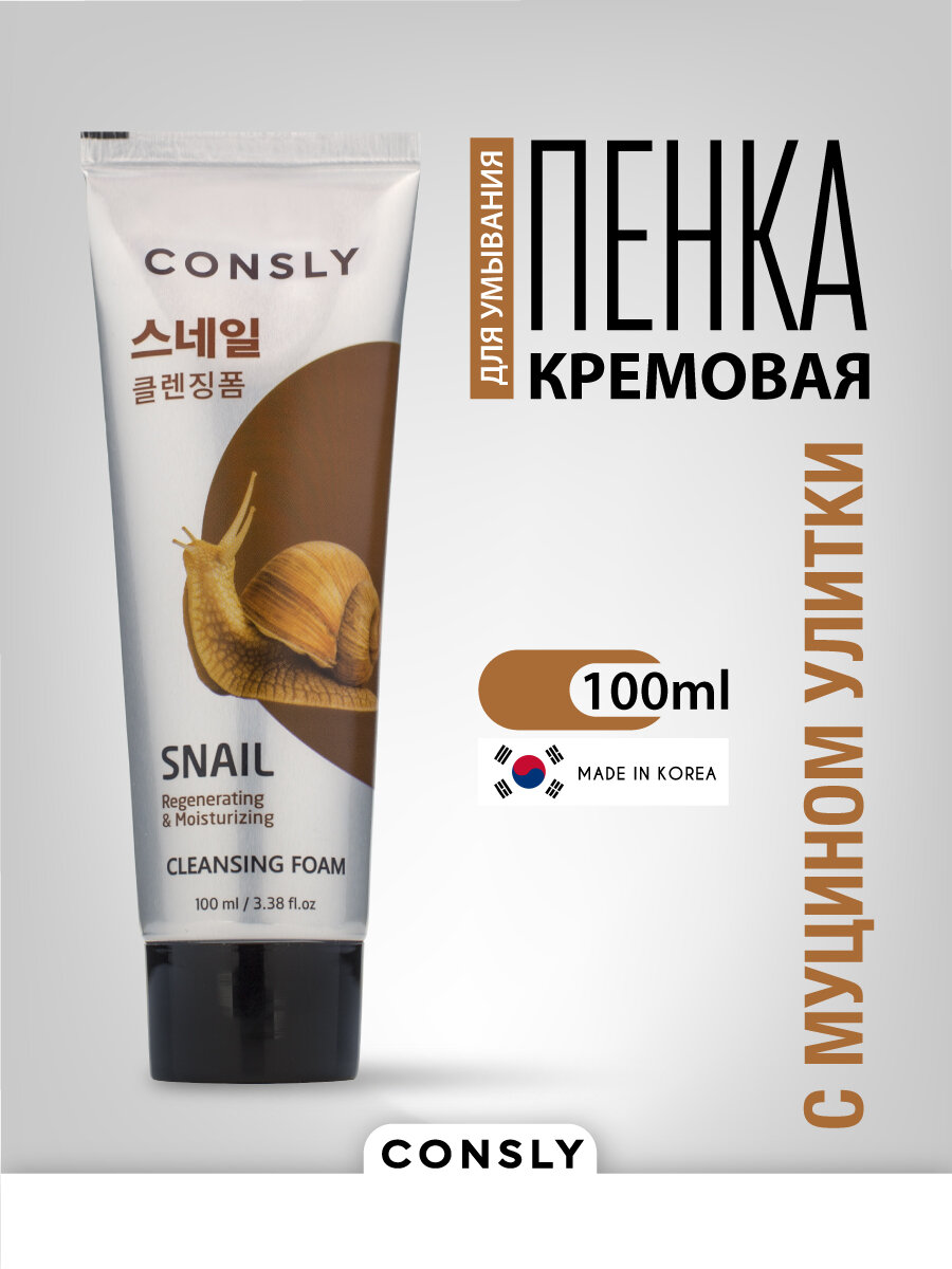 10 цен на Consly Cleansing Classic Восстанавливающая кремовая пенка для умывания с муцином улитки, 100 мл
