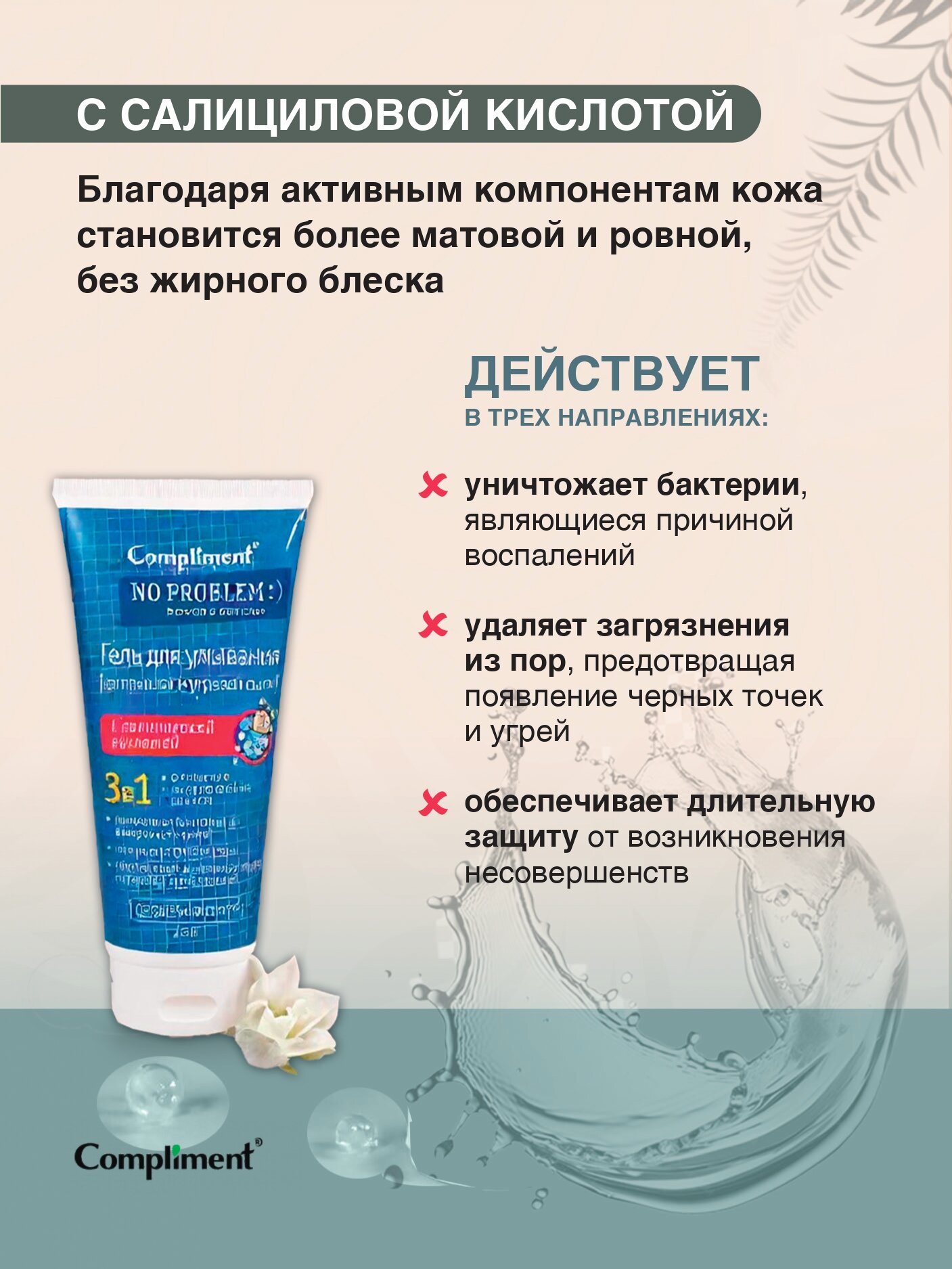 10 цен на Compliment Гель для умывания 3в1 с салициловой кислотой No Problem 200 мл
