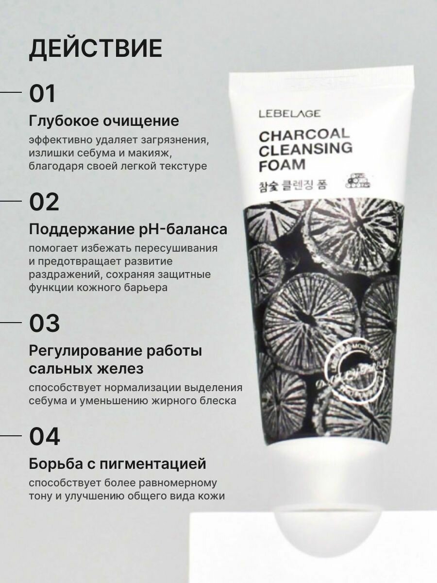 10 цен на Lebelage Пенка для умывания, для снятия остатков макияжа, для ухода за кожей лица, шеи и зоны декольте с углем, корейская косметика. 100 мл