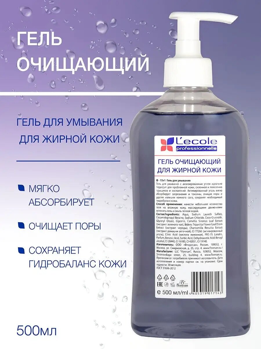 Гель для умывания Floresan L'ecole, для жирной кожи, с активированным углем, 500 мл информация: