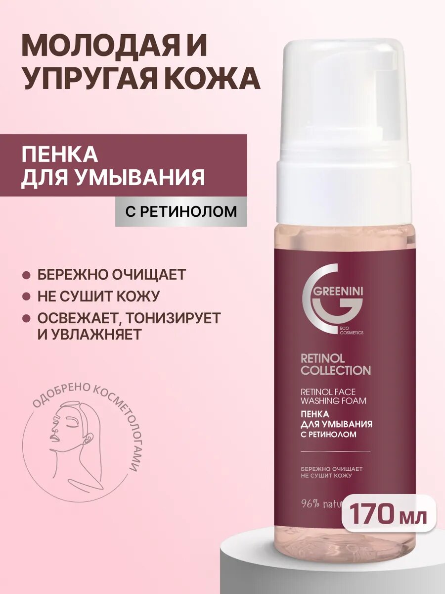 10 цен на Пенка для умывания Greenini, с ретинолом, для всех типов кожи, 170 мл