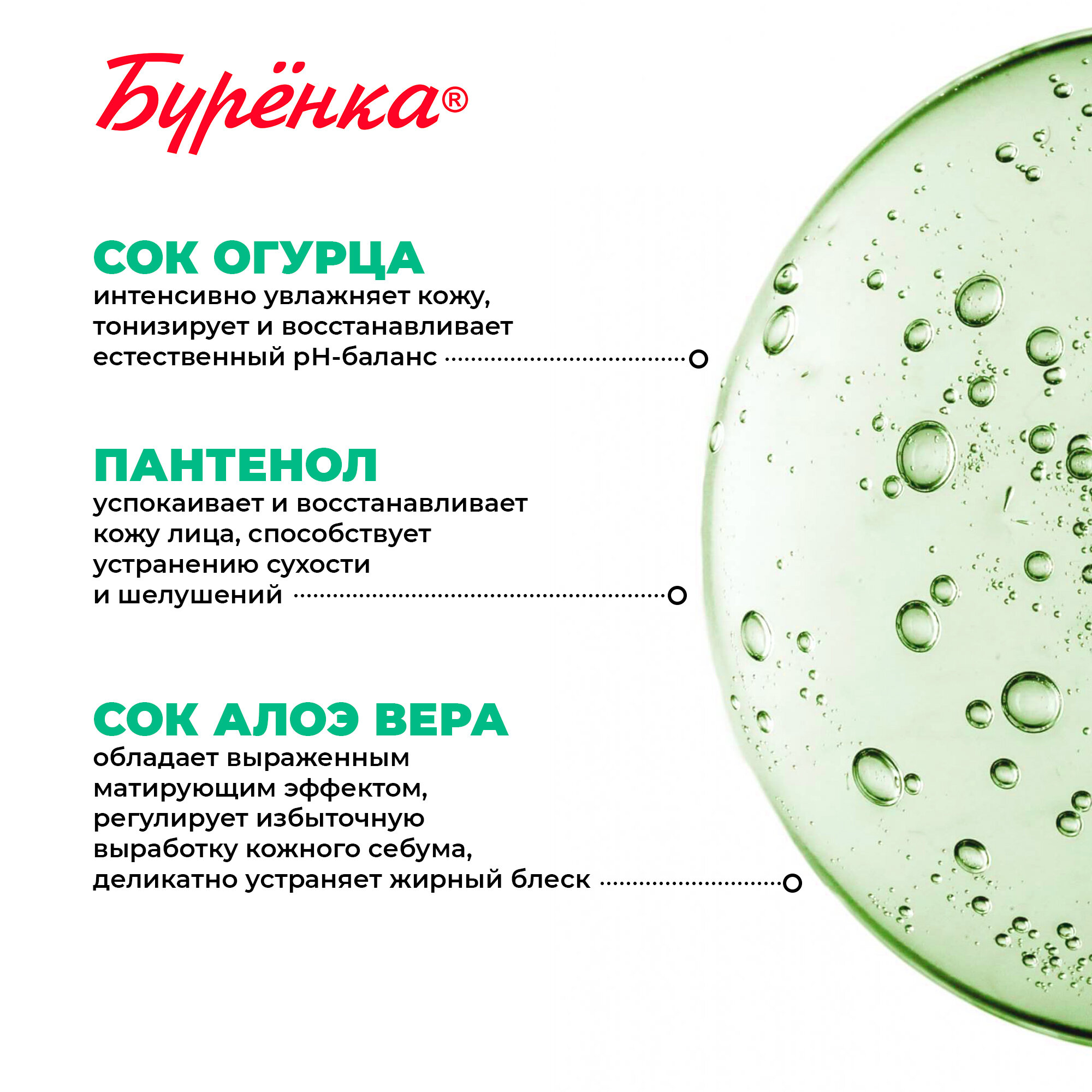Гель для умывания лица Буренка с соком Огурца и Алоэ вера для всех типов кожи, для снятия макияжа увлажняющий 300мл информация: