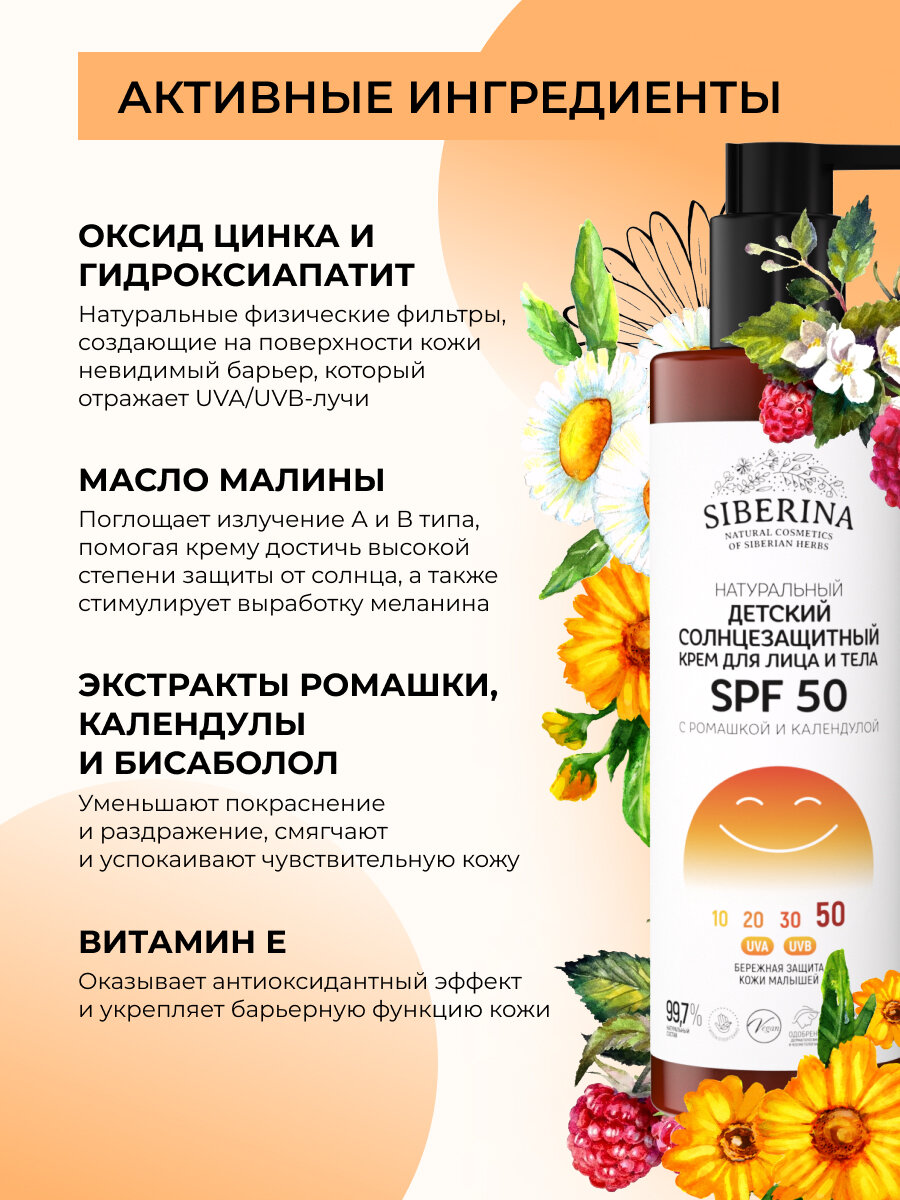Siberina Натуральный солнцезащитный детский крем для кожи лица и тела SPF 50 информация: