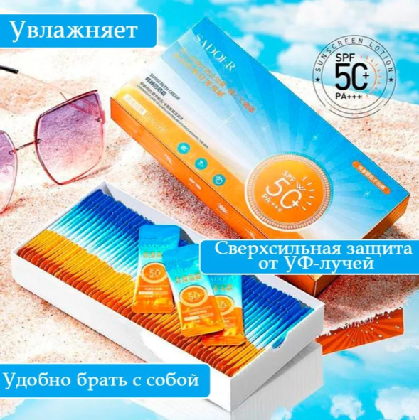 10 цен на SADOER Солнцезащитный крем для лица и тела 50+ SPF PA+++ в саше,50 саше по 1 гр.
