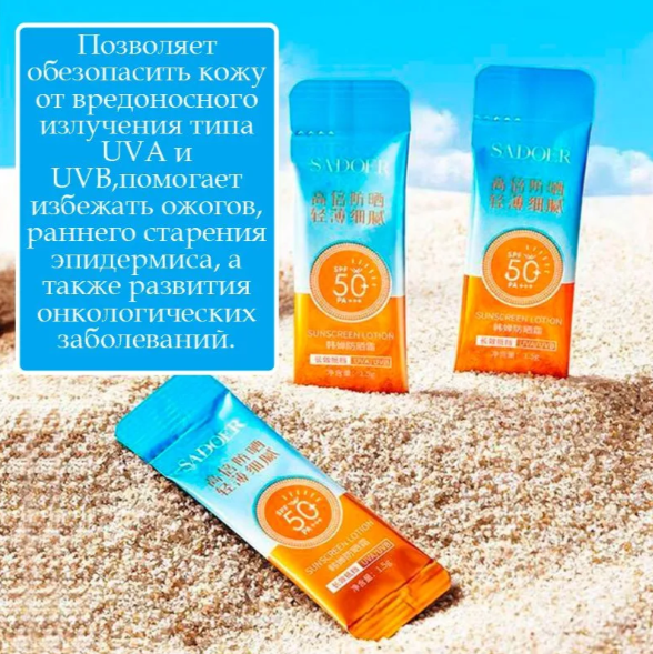 SADOER Солнцезащитный крем для лица и тела 50+ SPF PA+++ в саше,50 саше по 1 гр. информация: