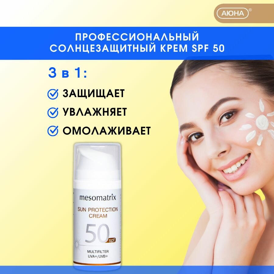 10 цен на Солнцезащитный крем от загара для лица и тела водостойкий увлажняющий SUN PROTECTION CREAM SPF 50, 100 мл Mesomatrix Professional (Аюна)