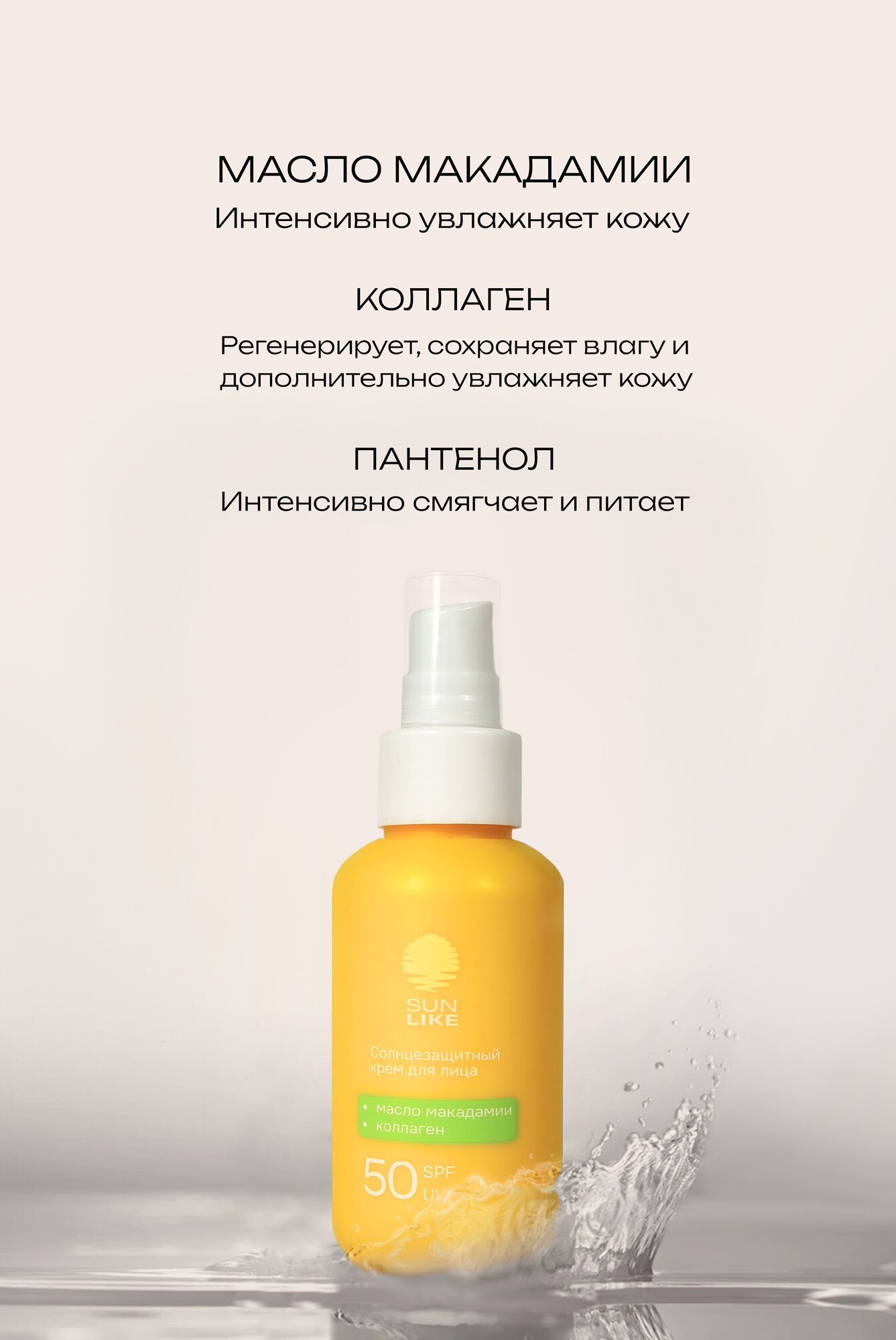 Крем SunLike солнцезащитный с пантенолом и маслом макадами SPF 50+, 100 мл информация: