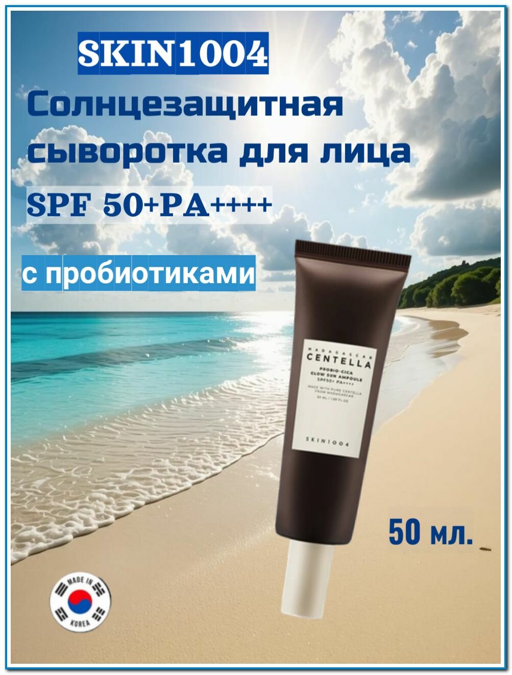 SKIN1004 Солнцезащитный крем сыворотка Madagascar Centella Probio-Cica Glow Sun Ampoule SPF 50 PA++++ 50 мл. информация:
