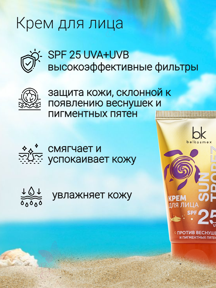 Крем для лица SPF 25 *UVA+UVB*против веснушек и пигментных пятен Belkosmex 50 г информация: