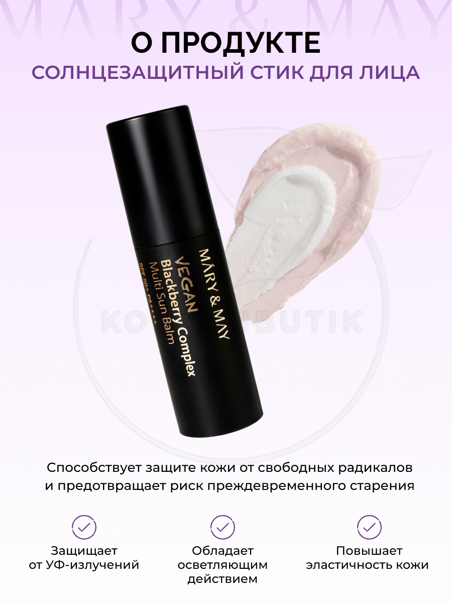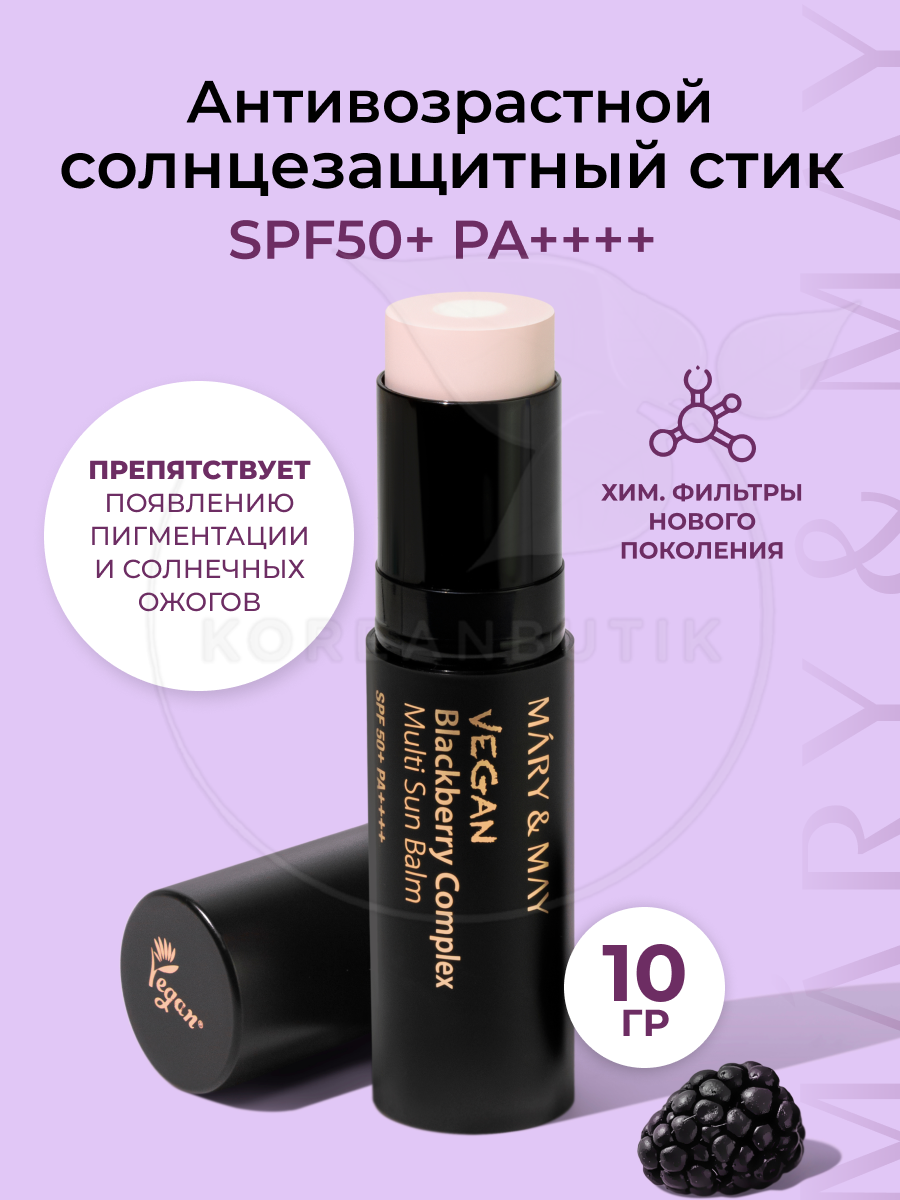 Отзывы на Бальзам многофункциональный солнцезащитный | Mary & May Vegan Blackberry Complex Multi Sun Balm SPF50+ PA++++ 10g