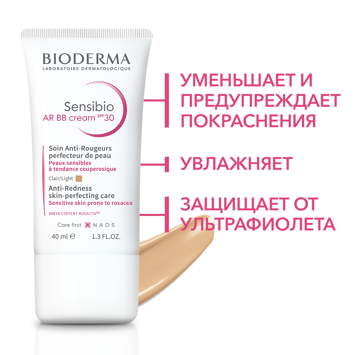 BIODERMA Sensibio AR Солнцезащитный BB крем с тоном для кожи с покраснениями и розацеа SPF 30, 40 мл информация: