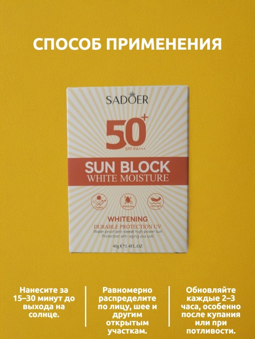 Осветляющий и увлажняющий солнцезащитный крем для лица и тела Sadoer SPF50+ PA+++ 40 гр. информация: