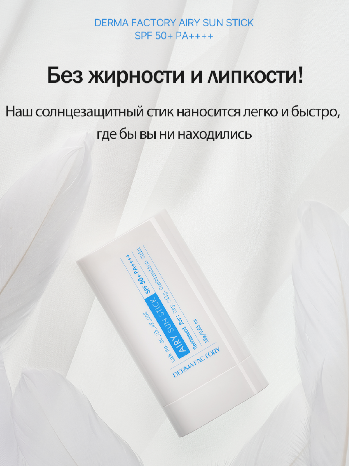 Derma Factory Лёгкий солнцезащитный стик с мощной УФ-защитой Airy Sun Stick SPF 50+ PA+ 18 гр. информация: