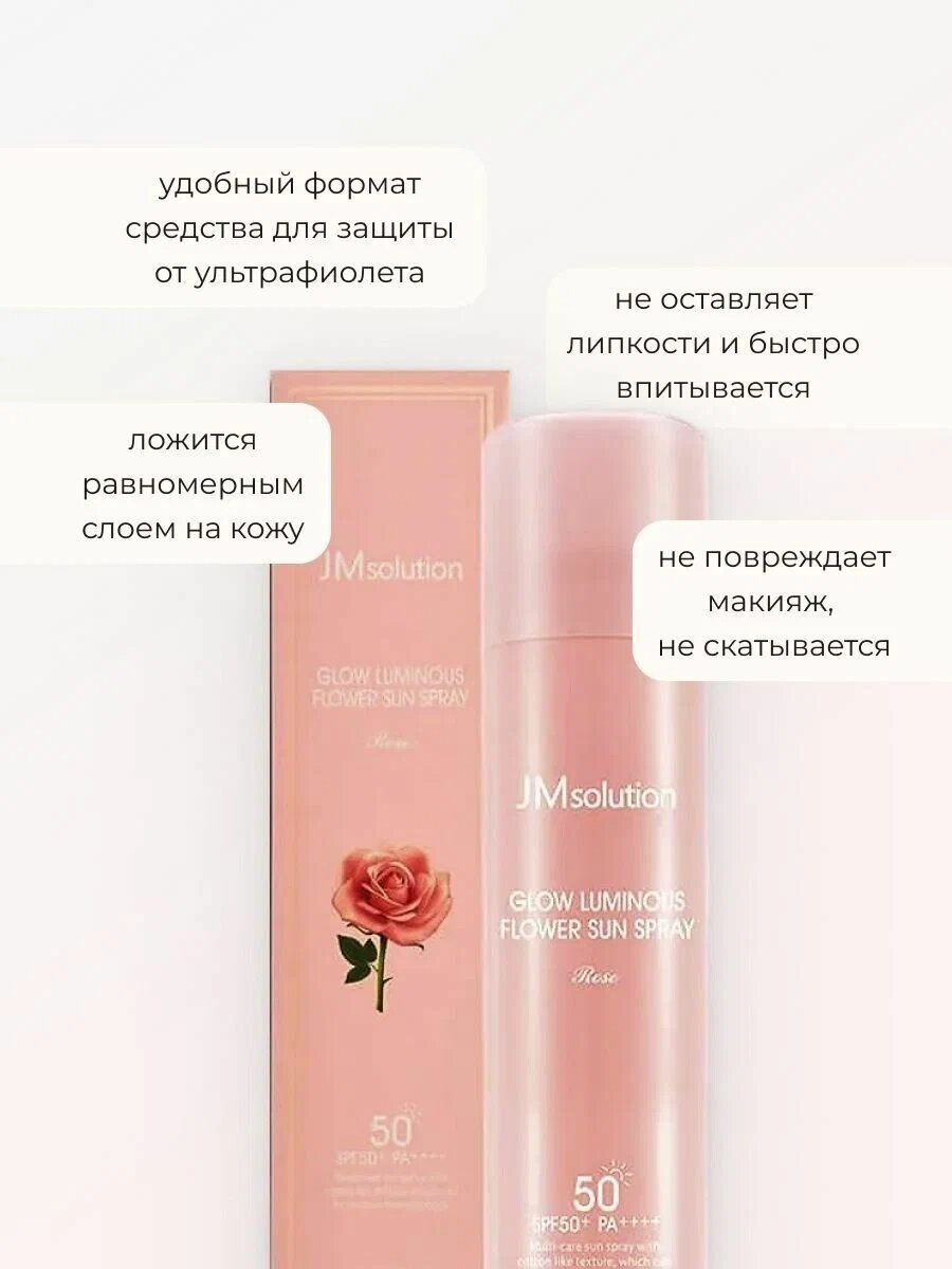 Солнцезащитный спрей JM Solution GLOW LUMINOUS FLOWER SPF 50+PA+++, с экстрактом розы, 180 мл информация: