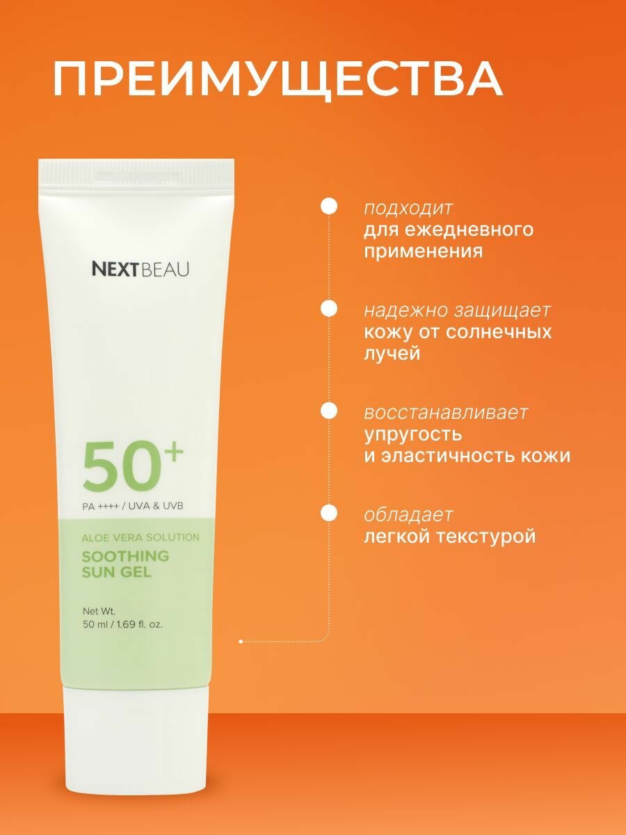 NEXTBEAU Успокаивающий солнцезащитный гель с экстрактом алоэ SPF 50+/PA+, 50мл информация: