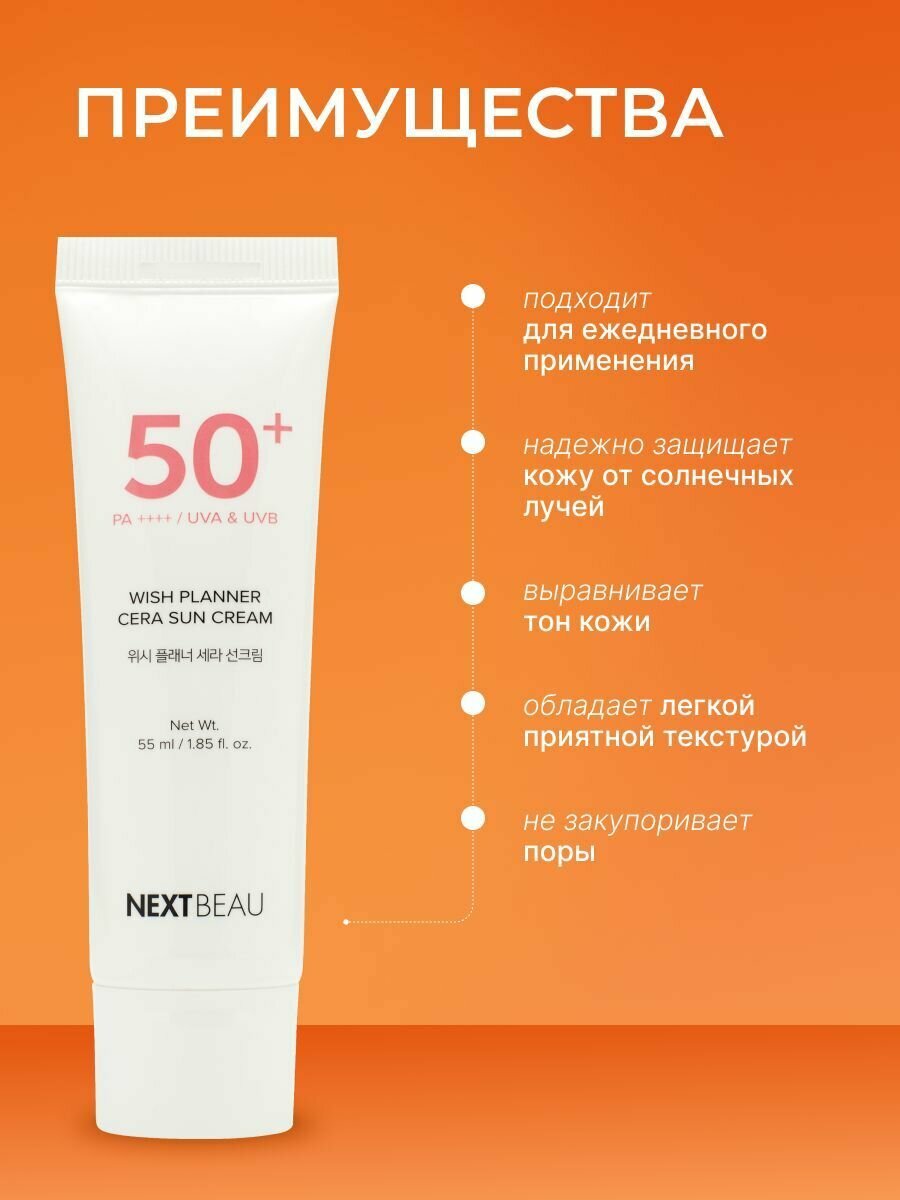 10 цен на NEXTBEAU Успокаивающий солнцезащитный крем с керамидами для чувствительной кожи SPF 50+/PA+, 55мл