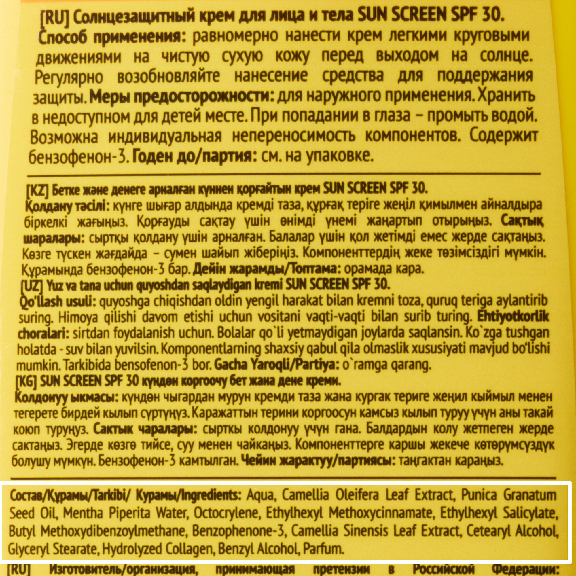 10 цен на Солнцезащитный крем fito cosmetic для лица и тела Sun Screen SPF30 140мл
