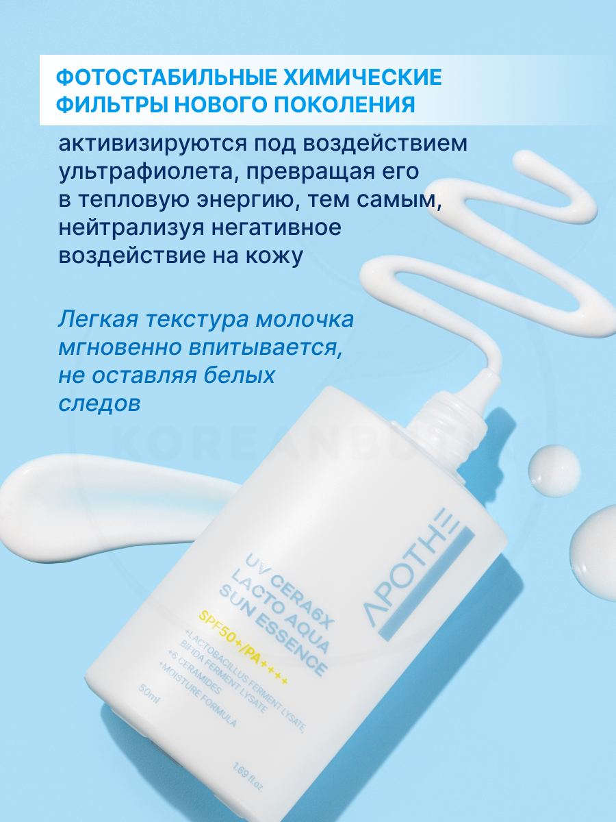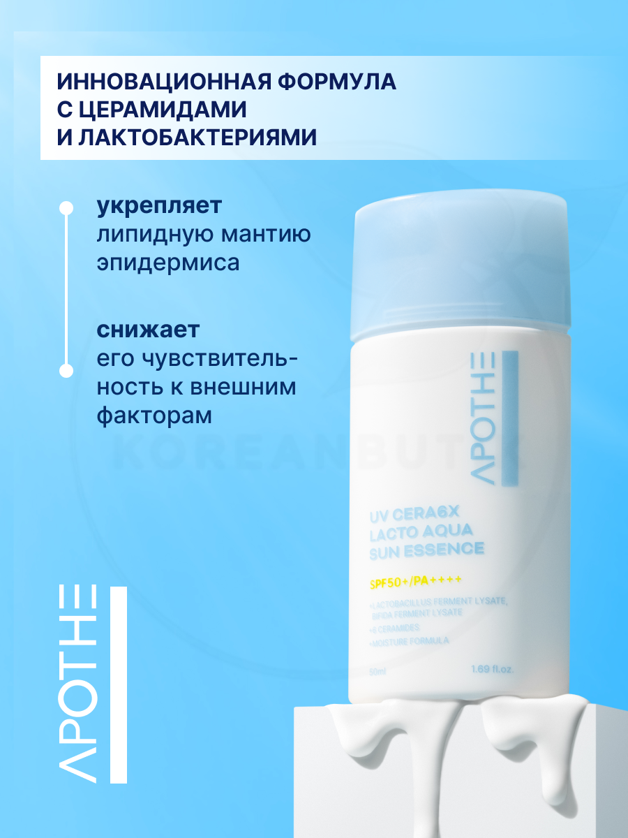 Эссенция солнцезащитная | Apothe UV Cera6X Lacto Aqua Sun Essence 50 ml SPF50+ PA++++ информация: