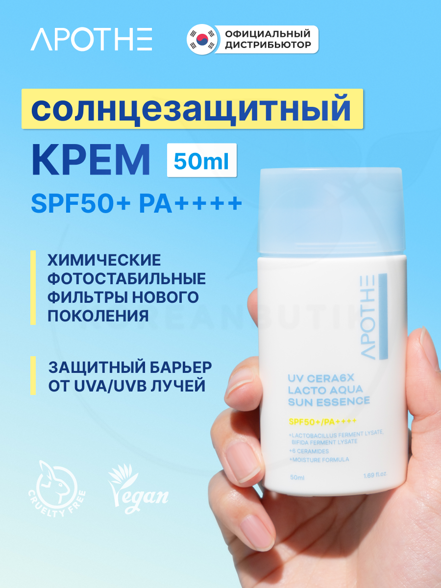 10 цен на Эссенция солнцезащитная | Apothe UV Cera6X Lacto Aqua Sun Essence 50 ml SPF50+ PA++++