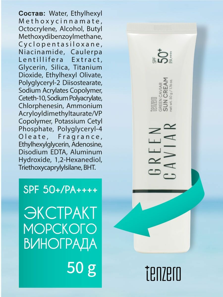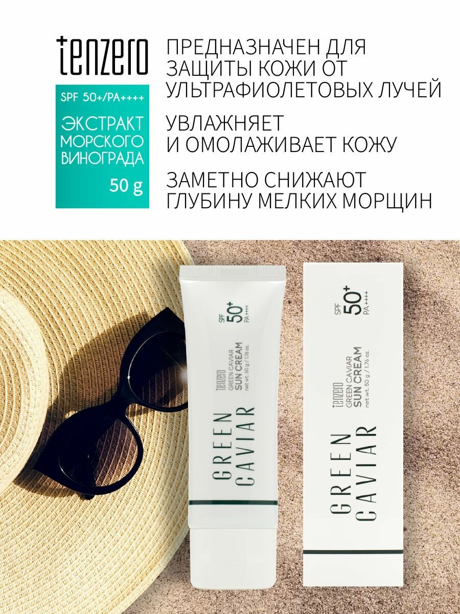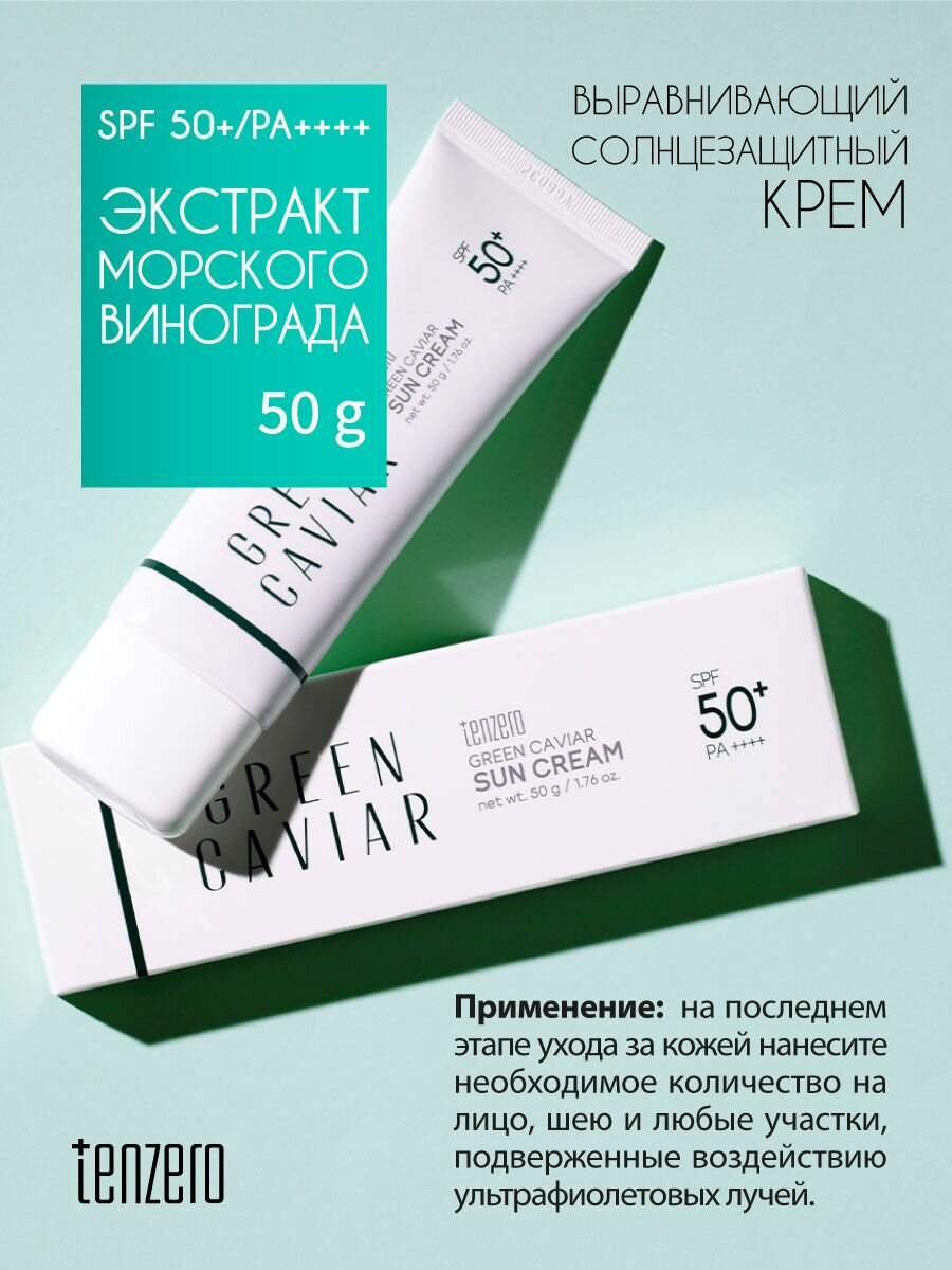 TENZERO Выравнивающий солнцезащитный крем с экстрактом морского винограда SPF 50+/PA+, 50г информация: