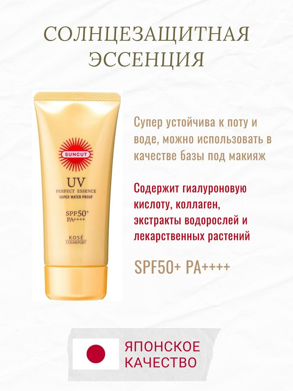 KOSE Эссенция Солнцезащитная SUNCUT Perfect SPF50+ Суперводоотталк Двухфазная глуб увлаж 110 гр туба информация: