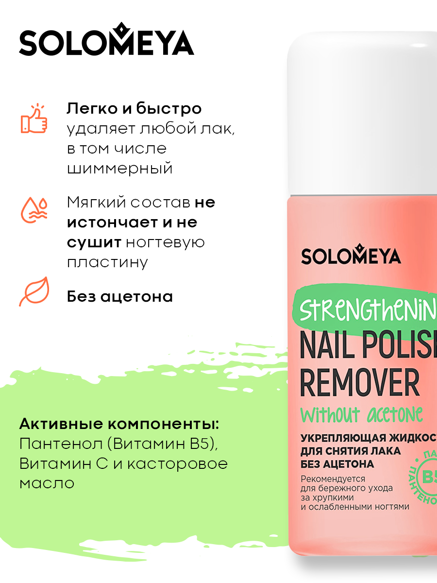 Solomeya Жидкость для снятия лака без ацетона с Витамином В5, Оранжевая,105 мл информация:
