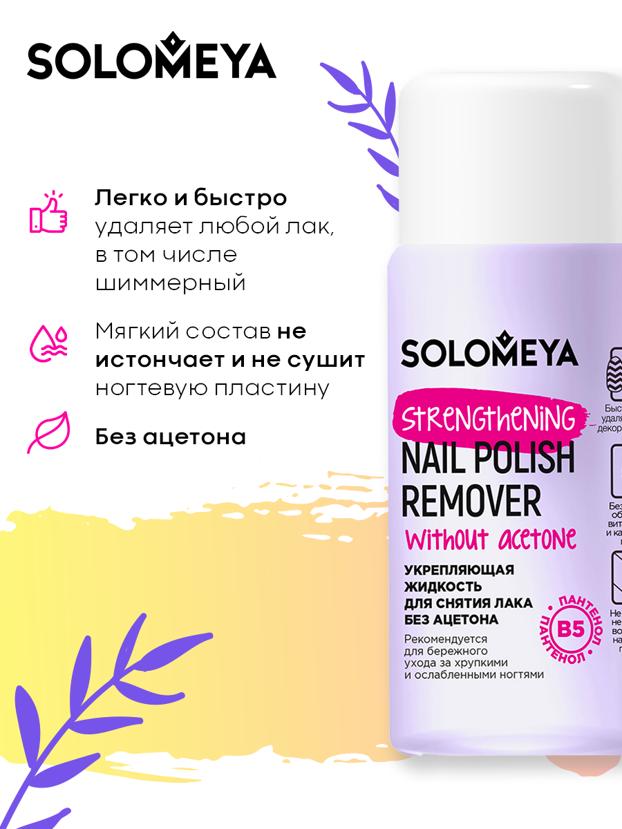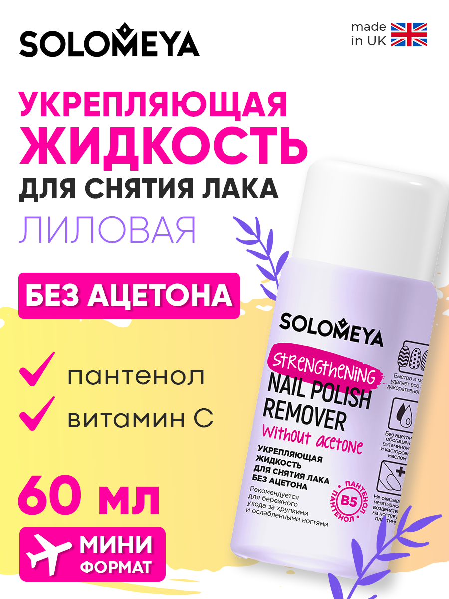 10 цен на Solomeya Укрепляющая жидкость для снятия лака без ацетона с Витамином В5, Лиловая , 60мл