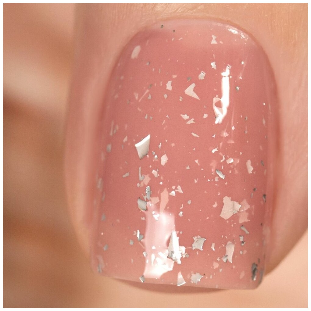 Лак для ногтей Укрепляющий Ты-Нежность, бежевый с голографическим глиттером, 11 мл