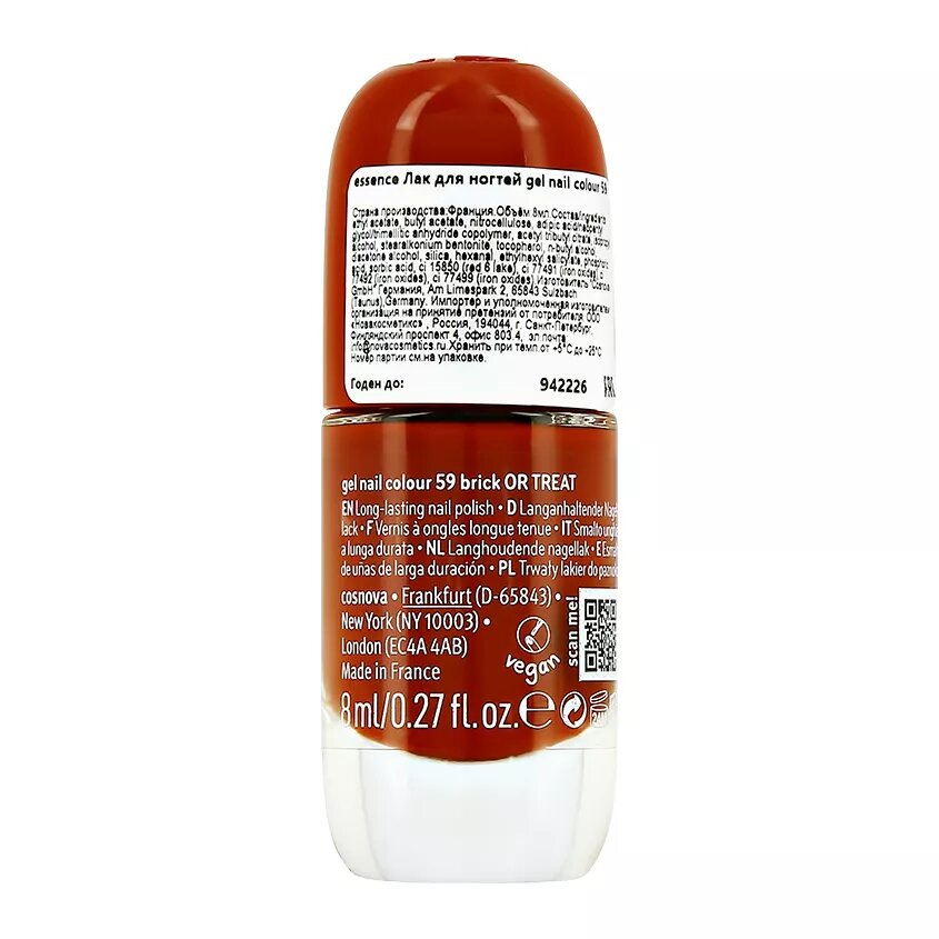Лак для ногтей `ESSENCE` GEL NAIL COLOUR, тон 59 brick or treat информация: