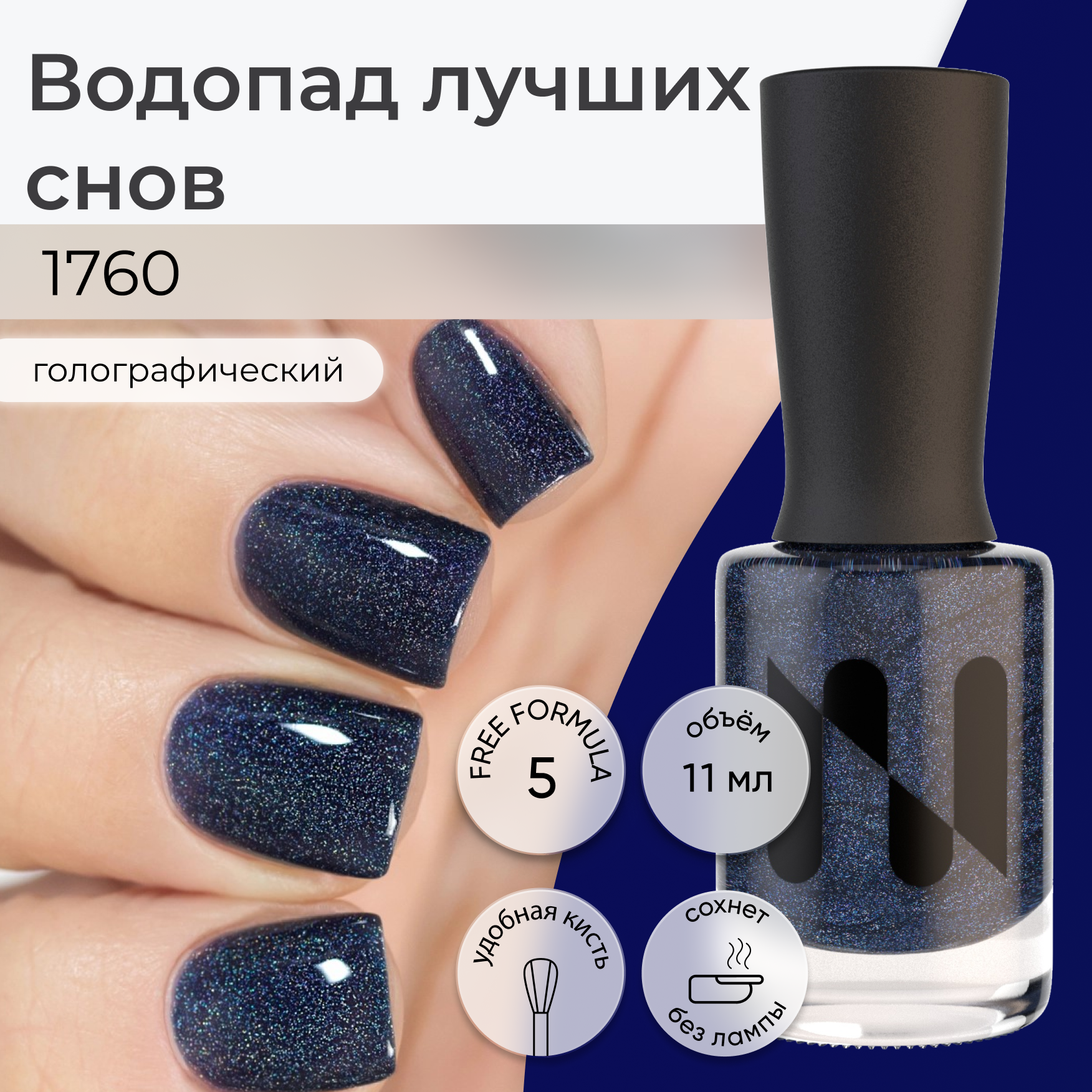 Отзывы на Голографический лак для ногтей Водопад Лучших Снов, темный синий, 11 мл