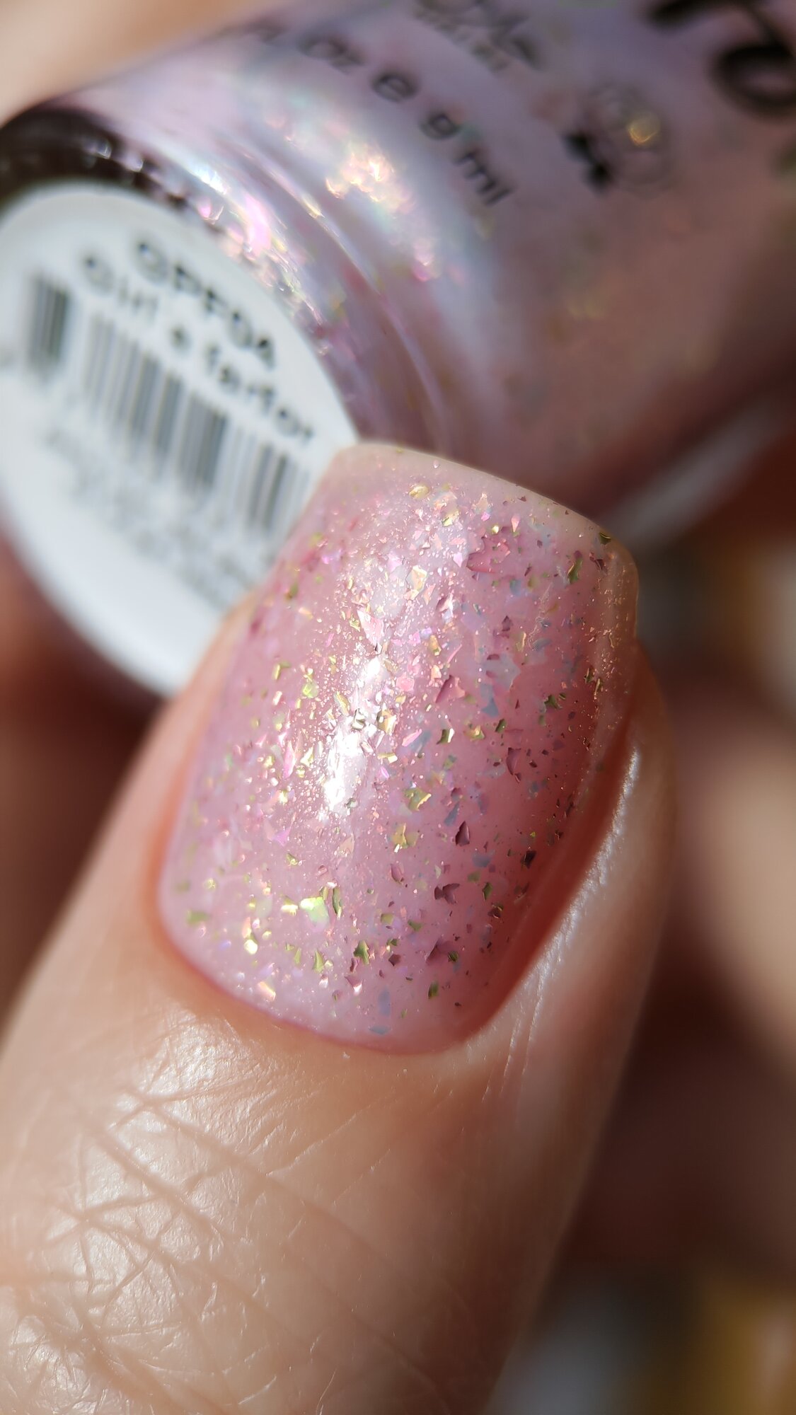 Лак для ногтей Укрепляющий Ты-Нежность, бежевый с голографическим глиттером, 11 мл