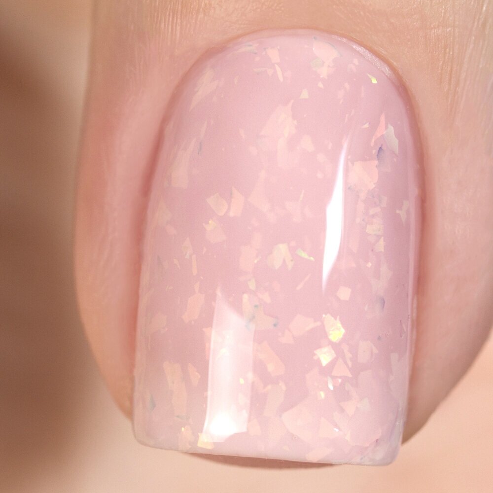 Лак для ногтей Укрепляющий Ты-Нежность, бежевый с голографическим глиттером, 11 мл