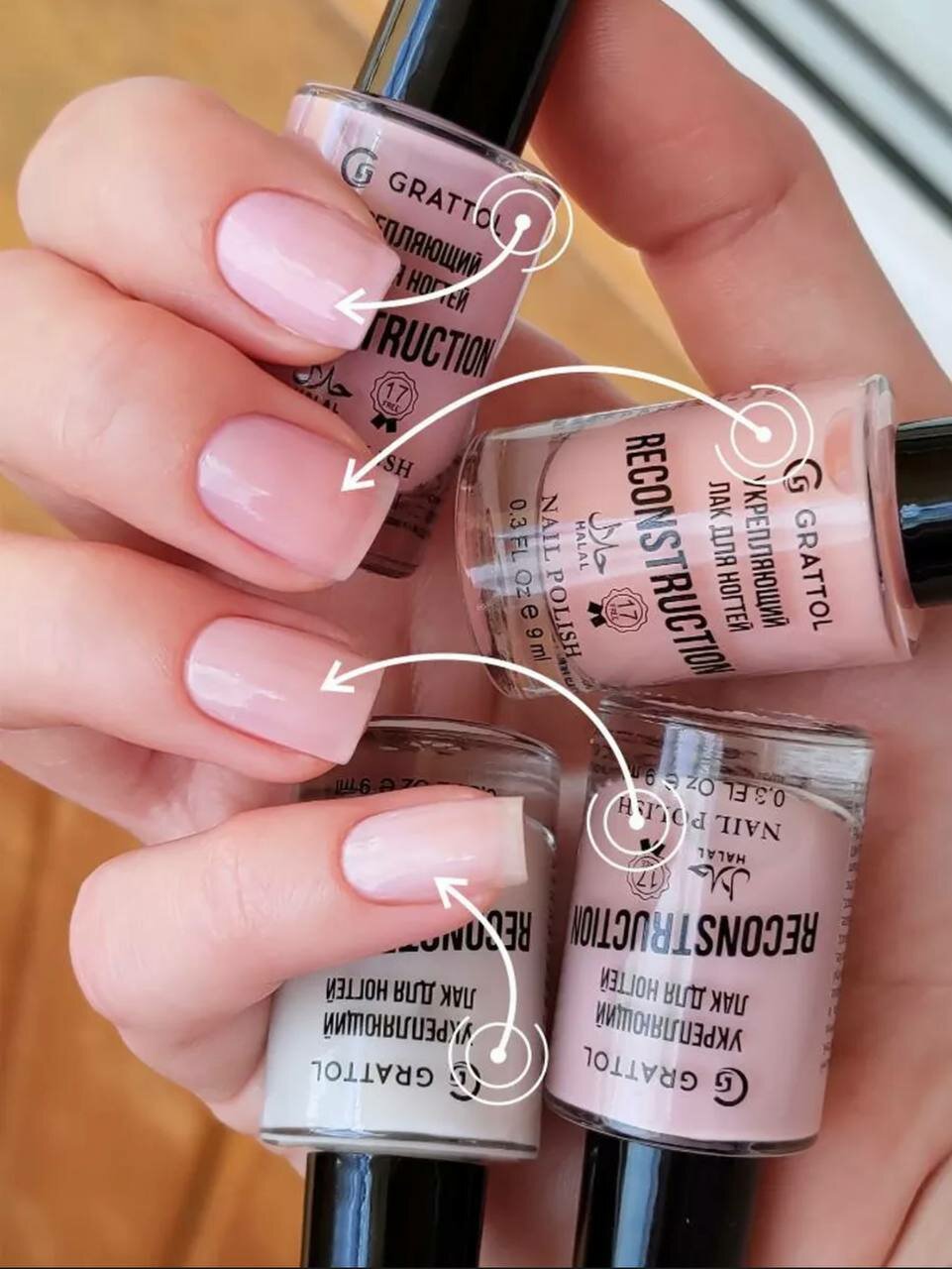 Grattol Color Nail Polish Reconstruction 2, укрепляющий лак для ногтей, розовый, без лампы, Халяль, 9 мл 410 ₽