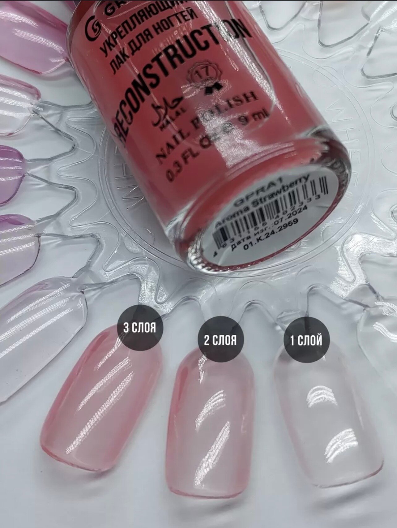 Отзывы на Grattol Aroma Strawberry - укрепляющий лак для ногтей с ароматом клубники, прозрачно-розовый, без лампы, Халяль, 9 мл