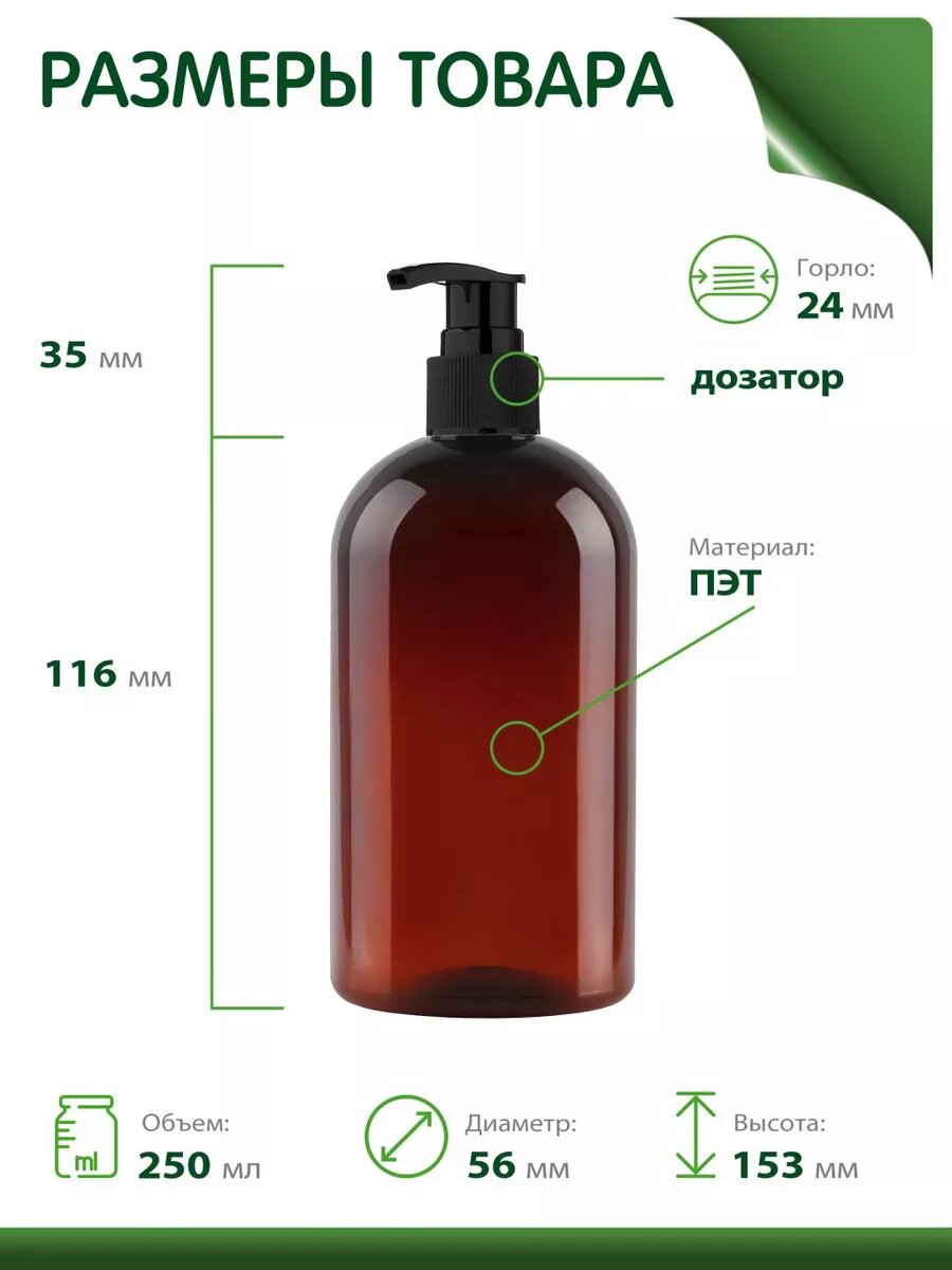 10 цен на Флакон 300 мл косметический с дозатором для мыла, 2 шт.