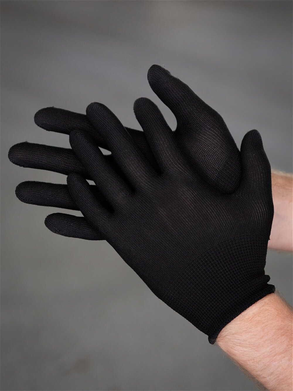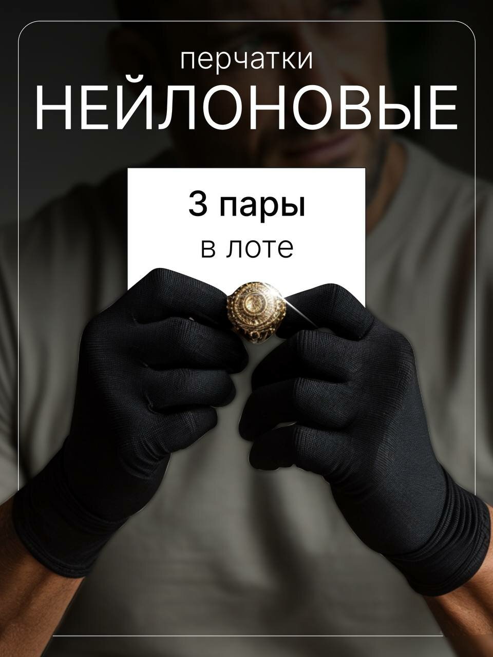 10 цен на Перчатки нейлоновые бесшовные черные (без точки) многоразовые 3 пары