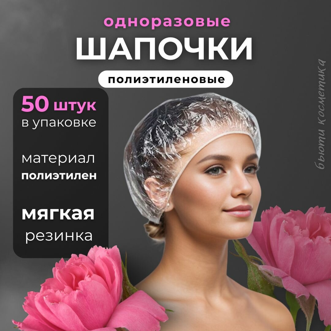 Шапочка для душа, 50 шт. Одноразовые шапочки для окрашивания, мелирования, медицинские, полиэтиленовая информация: