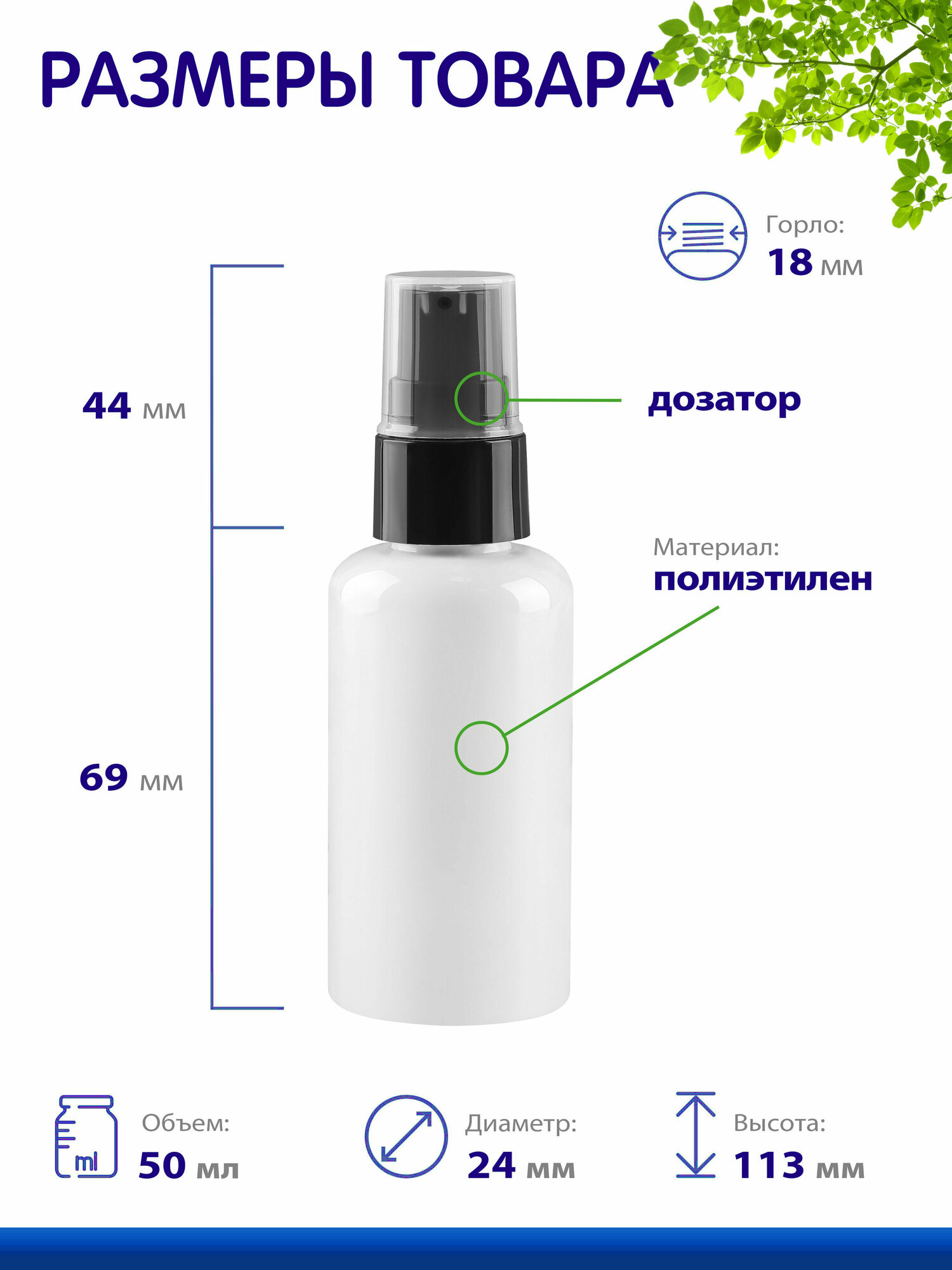 Флакон белый с дозатором для крема, 50 мл, 8 шт. информация: