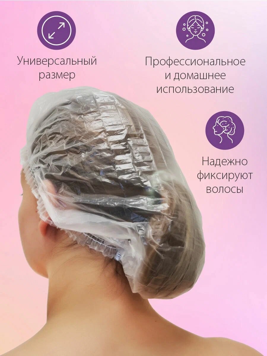 Шапочка для душа Амарант полиэтиленовая, 500 штук в Евроблоке Прозрачная информация: