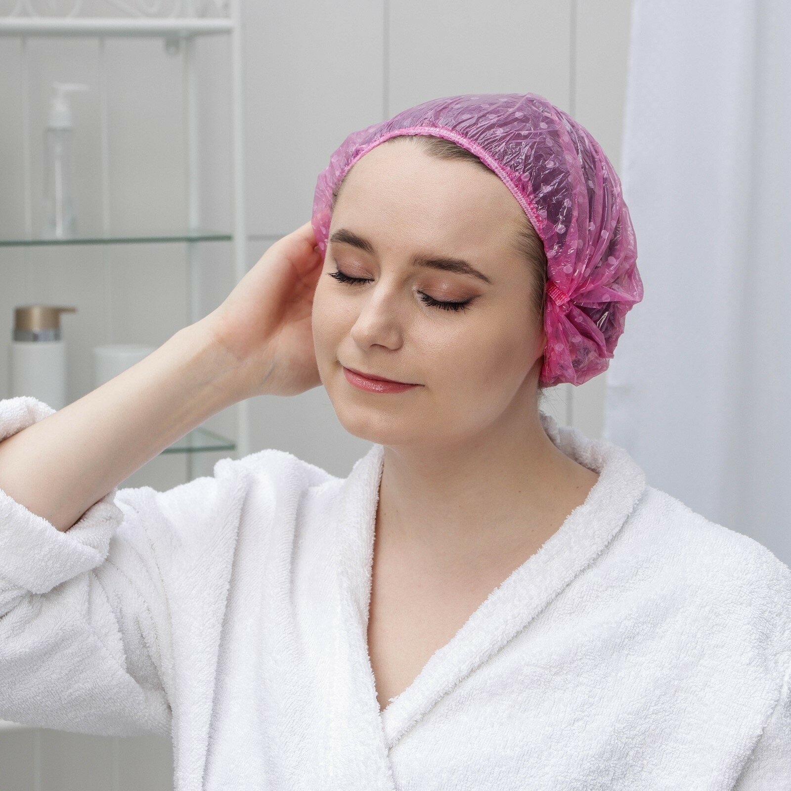 Шапочка для душа многоразовая, универсальный размер, плотная, набор 3 шт.