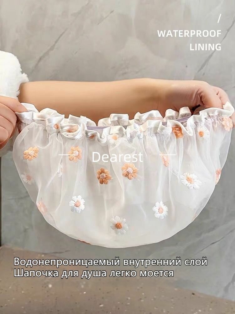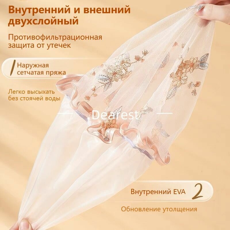 Отзывы на Многоразовая шапочка для душа, Двойной материал, Жёлтый, Вышивка Солнечный цветок Рисунок.