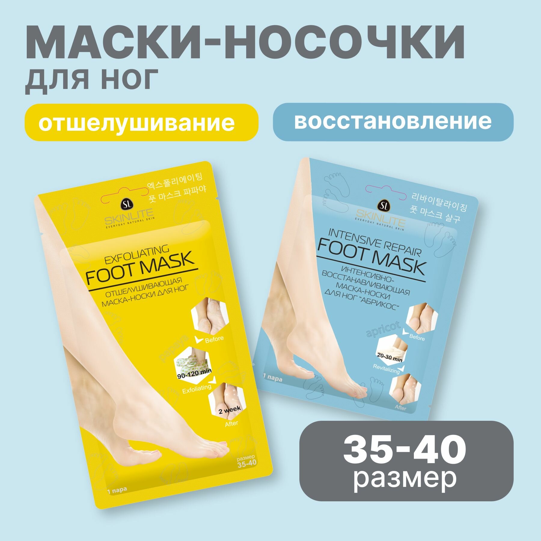 10 цен на SKINLITE Набор: отшелушивающая и восстанавливающая маски-носочки для ног, р. 35-40