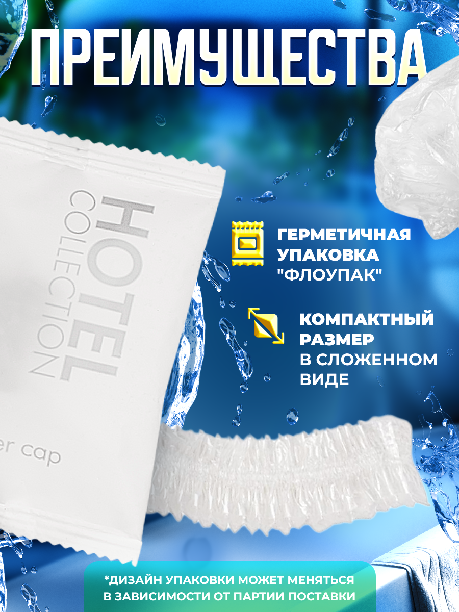 Одноразовая шапочка для душа Hotel Collection, упаковка флоупак - 50 штук информация: