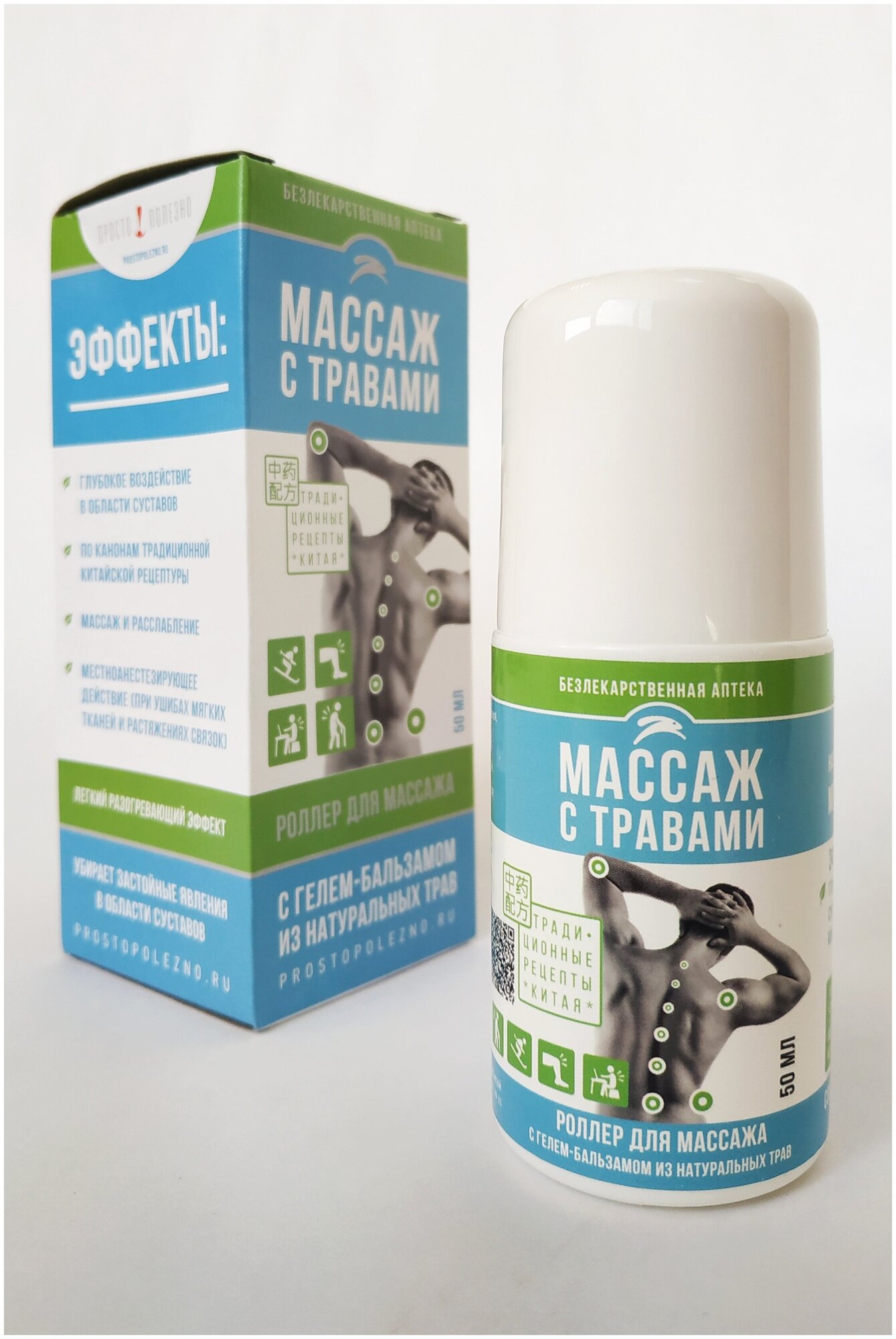 Роллер для массажа с гелем-бальзамом из натуральных трав Просто-Полезно, 50 мл. информация: